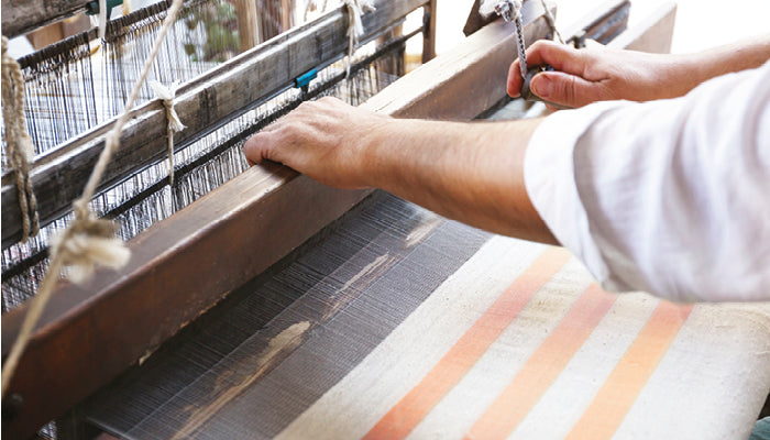 The level of artistry and intricacy achieved in handloom fabric is unparalleled. Crafting this fabric takes time, patience, and a unique set of skills, which is where our talented artisan partners really shine. The handloom process begins with yarn being hand-dyed before it’s carefully woven on a handloom which is operated solely by a skilled artisan. The unique nature of the hand-woven process means that no two lengths are ever the same.